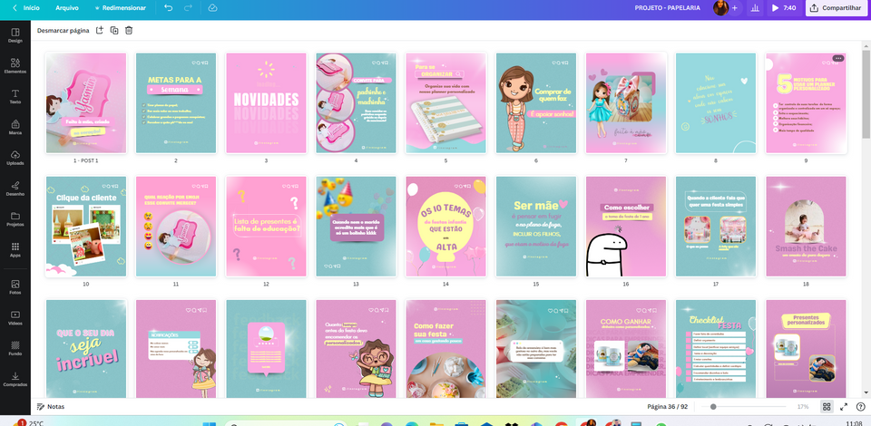 Artes prontas e editáveis com conteúdos para papeleiras postarem em suas redes sociais.